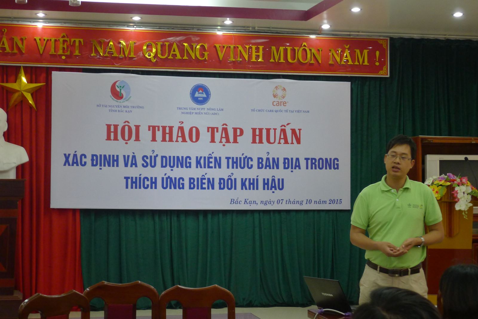 October 7th, 2015 ADC and Department of Natural Resources and Environment of Bac Kan jointly organized the "Identifying and using indigenous knowledge in climate change adaptation" training workshop in Bac Kan city. The representatives attended the workshop are from the People's Committee Office of the province, the Department of Natural Resources and Environment, Department of Agriculture and Rural Development, Department of Planning and Investment, Department of Science and Technology, Department of Crop Production Expenses and Plant Protection, Agricultural Extension Center, the Women's Union, Department of Agriculture from districts of Bac Kan province, commune governments in project areas.