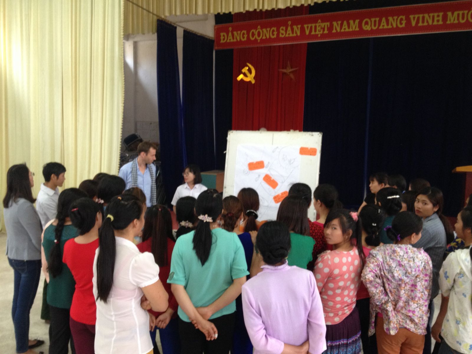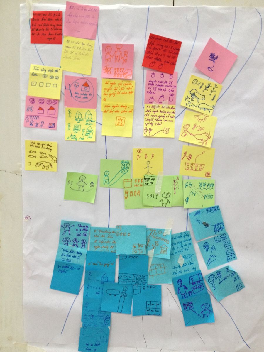 During the training, ADC staff worked directly with the people in this community by using tools like Vision Journey - to determine their visions in near future, find out the advantages and disadvantages, develop the roadmap and solutions to achieve their visions successfully based on their actual situations; the Chalenge Action Tree – to figure out focal problems, demonstrations and the causes of them, then offer solutions; Gender Balance Tree – to identify the division of the housework, the imbalance in decision-making between men and women, and then provide resolutions to change.